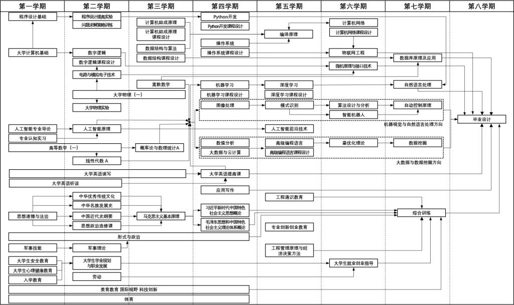 人工智能原理、电路与模拟电子技术、数字逻辑、离散数学、数据结构与算法、图像处理、编译原理、机器学习、Python开发。