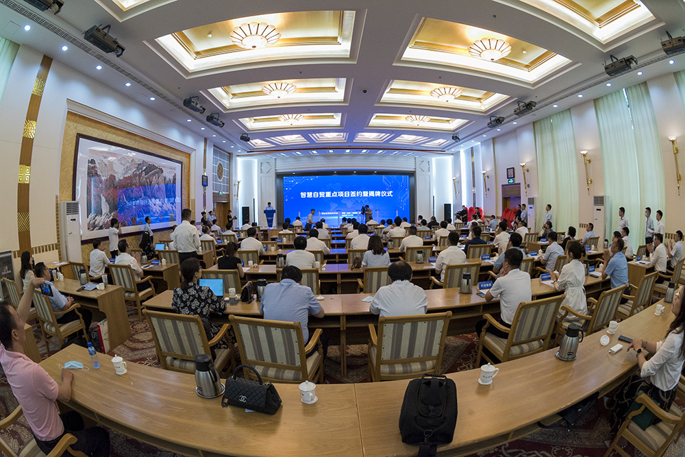 致辞结束后,张术平、于松柏、于英涛、张力、张伟、郭善利、张代令、牟树青、刘健民等共同为久久小说 新华三数字创新学院、中节能数字经济产业园、数字孪生联合创新中心、明石创新5G+微纳制造产业技术研究基地、5G+工业互联网创新中心等五个智慧自贸重点项目揭牌。牟树青与清华紫光集团、上海理想信息产业有限公司等4家企业签署了智慧自贸战略合作协议,刘建民与市5大运营商签署了5G战略合作协议,市5大运营商分别与自贸区15家企业签署了“新基建”合作协议。