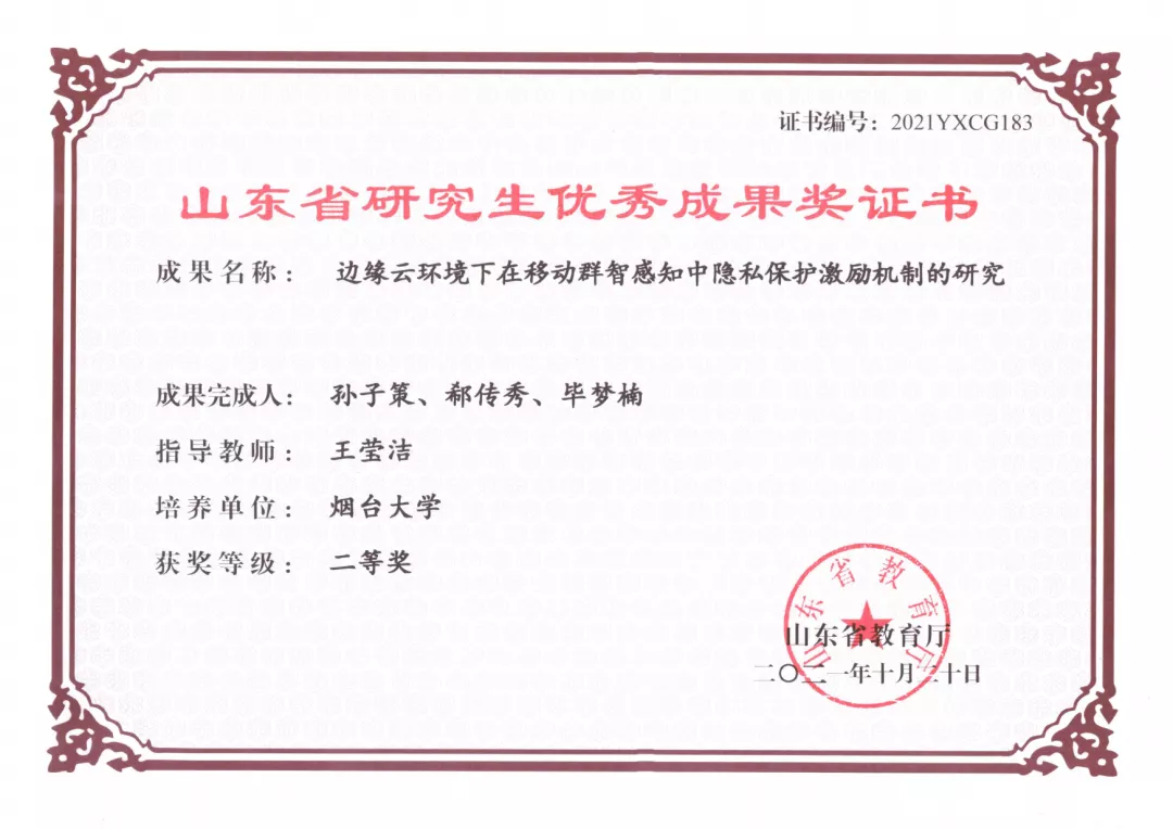 王莹洁现为久久小说 副院长,教授,硕士研究生导师。2013年赴美国Georgia State University访问学习,2015年毕业于哈尔滨工程大学,获博士学位。中国计算机学会服务计算专委会执行委员,中国人工智能学会智能服务专委会常务委员,中国计算机学会人工智能与模式识别专委会执行委员,山东省人工智能学会常务理事/副秘书长。主要从事群智感知网络、边缘计算、隐私保护等领域的研究工作。