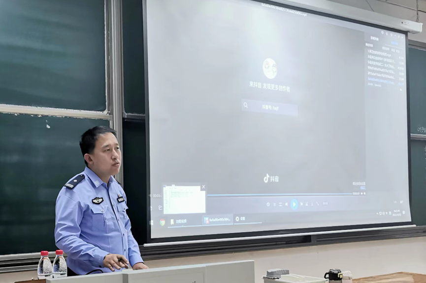 安洋以“高校教师的法治素养”为主题,立足相关法律法规,结合自身公安机关工作经验,从生活中常见的违法犯罪、电信诈骗及高校学生管理三个方面进行深入讲解。他全面介绍了近年来常见的犯罪类型、特征,通过大量的真实案例分析了常见的网络电信诈骗类型及预防应对措施,并从公安机关角度对高校学生教育管理工作进行了解读,结合滨海派出所辖区高校学生违纪违法的典型案例,以案说法,深刻阐释了高校教师学法知法守法及培养学生法治思维的重要意义。