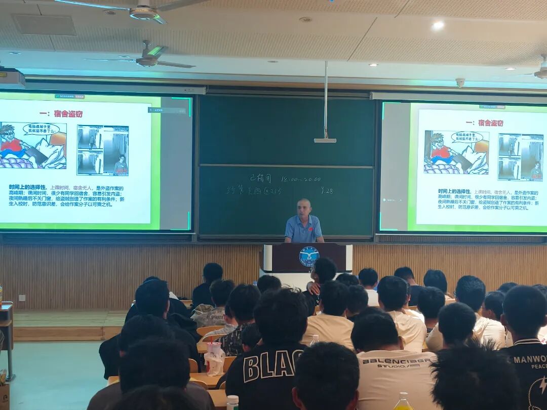 晚间,学院面向全体新生举办安全教育专题活动。保卫处张杰老师结合丰富实例,通过互动式教学,从校园生活、人身安全、网络防护等关键领域切入,帮助新生系统建立安全防范意识,切实提升自我保护能力。