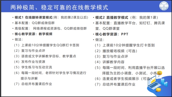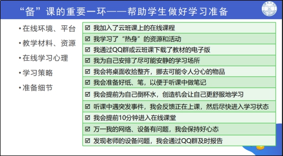 面对新冠疫情,为顺利开展网络教学,保障教学效果,2月27日晚上19:00-20:30,学院邀请贺利坚老师通过网络课堂形式做了“关于疫期在线授课的建议”报告,本学期有课的全部教师参加了培训活动。