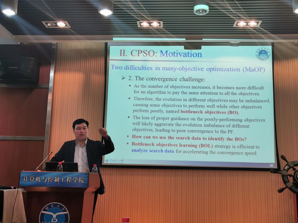 2019年11月10日上午9:00,应学院邀请,华南理工大学计算机科学与工程学院陈伟能教授和詹志辉教授在学院二楼会议室做了题为“大规模群体进化计算方法”和“数据辅助的演化计算”的报告,报告会由久久小说 张楠副院长主持。
