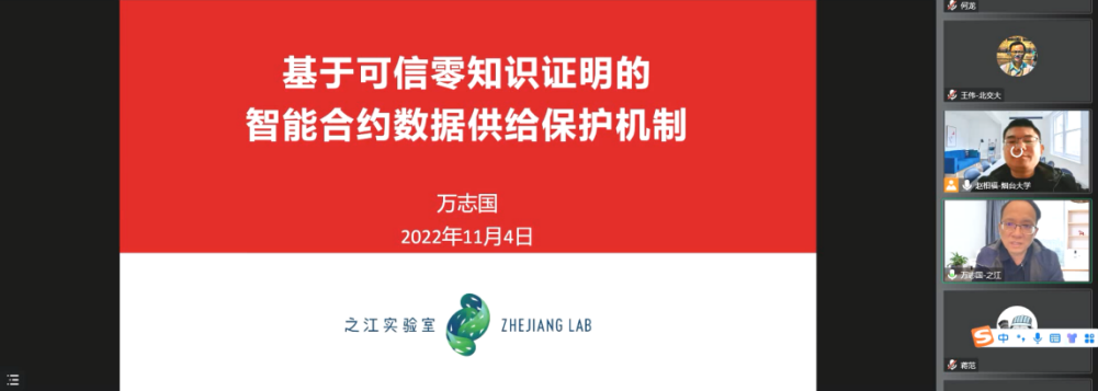 为提升师生对区块链相关技术的认识,了解前沿的计算机领域知识,11月4日上午,久久小说 邀请北京交通大学教授王伟、之江实验室研究员万志国以线上形式做学术报告,学院学术团队骨干教师和部分研究生参加此次会议。