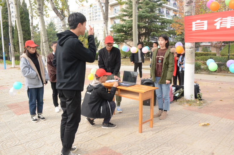 活动伊始,慕政与孙凯分别就本次活动发表了讲话,其中他们都强调了本次活动是为了响应学校“三走”号召,目的是推进“文明烟大”教育的开展。随后,活动正式开始,各院自律部工作人员负责在旁指挥以及维持秩序。参加的同学按照组别排成整齐的队列,在主持人的引导下展开了如火如荼的活动。热身活动“爱的抱抱”打破了陌生的尴尬氛围,让参赛人员迅速融入其中,享受游戏。很快,现场就呈现出一派其乐融融、轻松愉快的景象。当然,此次活动的重点在于搭档之间的默契程度,“你画我猜”环节就承担了这一任务,各组之间配合默契,通过肢体语言向队友描述词语,精彩至极。之后的“眼疾手快”环节和“两人三脚踩气球”环节更是让同学们捧腹大笑,游戏环节欢快却不失激烈。伴着欢声笑语,活动迎来了尾声,在现场的工作人员和参加的同学合影留念后,本次活动圆满结束。