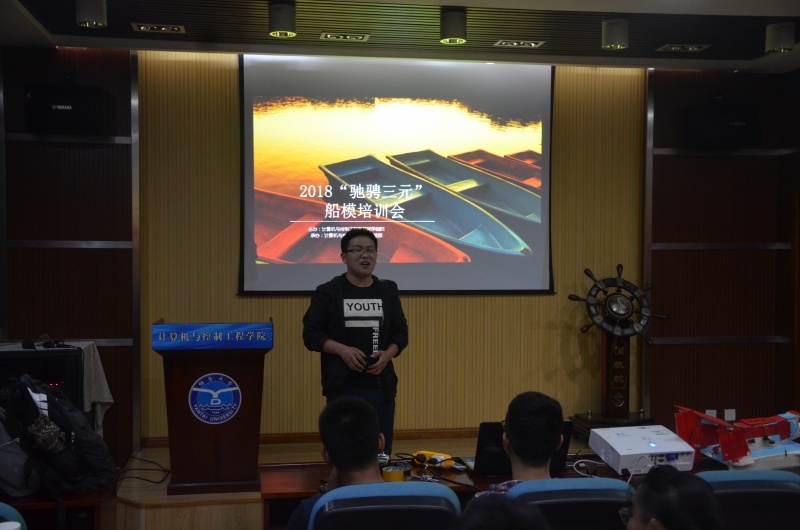全体成员准时到场落座后,活动正式拉开帷幕。活动伊始,王文旭、夏忠帅联合进行船模相关介绍,他们以自己的船模为例从选材、船模结构等方面给在场同学进行了讲解,并结合往年经验给有兴趣的同学提出建议,他们讲解到,一个船模的沉浮状况、马达安装以及防水措施远比它的外形重要,因此,他们建议,在搭好模型之后应先找场地进行测试,而不是过度追求外形。由于去年比赛期间有大风干扰,王文旭谈到制作船模过程中要考虑到天气因素,另外,在场同学向夏忠帅提问了许多制作过程中存在的疑惑,他就提出的问题给出了详细的解答。随后,雒福涛通过PPT进行了进一步介绍,他重点强调了船模遥控器的选择。他提到,遥控器的使用不仅仅局限在本次比赛中,因此要保证遥控器的质量问题。活动最后,由团学组织科技部成员刘嘉浩进行本次培训会的总结,他谈到,若在场同学有任何疑惑,可向实验室成员请教。对船模感兴趣的同学可到场地前方进行参观。至此,本次活动圆满结束。