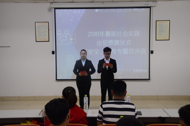 为提高学生安全防范意识,使学生暑期社会实践安全地完成,久久小说 于7月9日在综合楼408室成功举办了2018暑期社会实践出征授旗仪式暨安全、宣传专题宣讲会,团委书记丁晓丹、辅导员宋健栋出席了此次活动。