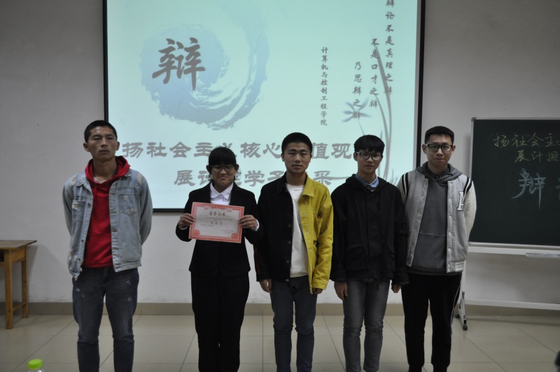在正方慷慨激昂、反方充满理性色彩的自我介绍后,本次辩论赛冠军争夺战正式开始。正方计176-2班持观点“传播的发展会打击本土文化”, 反方计176-1班辩论队的观点则为“传播的发展不会打击本土文化”,双方就彼此观点展开了激烈的辩论。双方一辩选手围绕辩题先后陈述他们各自的观点,开篇立论,陈词慷慨激昂,现场气氛迅速升温。比赛有条不紊地进行,双方代表展开了争分夺秒的驳辩环节,辩手们精辟的措辞将比赛推至高潮,经过评委打分,最终176-2班以微弱的优势摘得桂冠,而176-1班则荣获亚军。此外,在季军争夺赛172-3与173-1的对决中,双方围绕“广告是否有利于消费”为辩题展开激烈的争辩,经过一番唇枪舌战之后,172-3以更具说服力的言辞征服了在座的评委,赢得了场上的三等奖。继短暂而精彩的观众提问环节后,由校辩论队队长对本次比赛做了细致的总结,并对辩手们提出指导意见。最后,由评委为三支辩论队进行颁奖并合影留念,本届新生辩论赛决赛至此圆满结束。