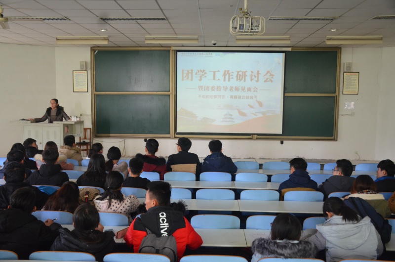 为使学生干部明确近期目标,加快工作进程,同时与新任团委指导老师进行会面以建立良好的师生及工作关系,久久小说 于12月6日中午在综合楼207室举办了团学工作研讨会暨团委指导老师见面会,党总支副书记贺毅,团委书记丁晓丹,辅导员蔡新海、宋健栋、刘晓婷出席了本次会议。