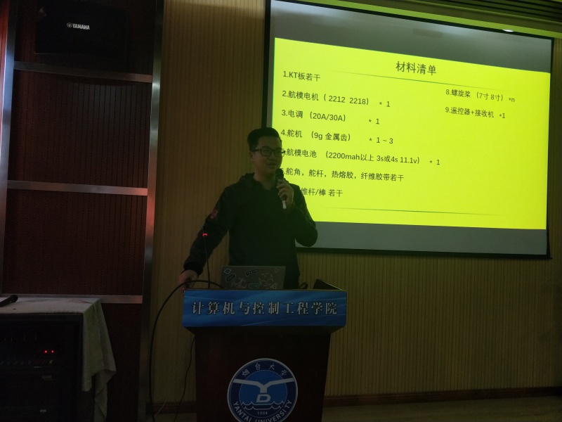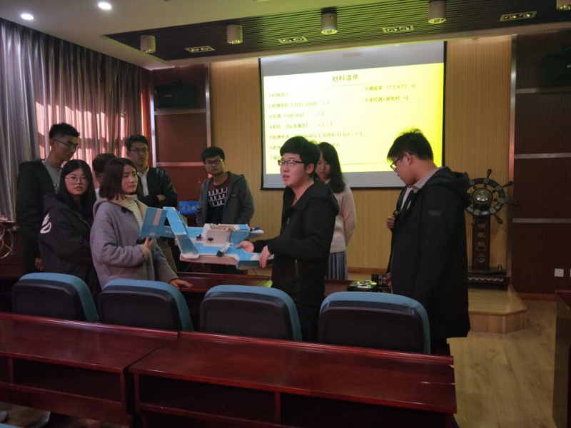 本次会议旨在通过近距离体验的形式,激发同学们制造船模的兴趣,同时加深他们对事物原理的认知,提高动手创造能力。会议伊始,由主讲人孙圣金上台发表讲话,他首先采用ppt讲解的方式就制作模型的步骤要领做了简要说明,并从造船的结构、电控、试水等方面向大家详细介绍了造船需要注意的问题。他着重强调了电池合理选择的重要性,通过列举出电控干货的材料清单,向大家分别描述了各种材料的用途及用法。之后,为使参赛者深入了解船模的构造原理,他还展示出造船实物模型供大家近距离观察,各成员也积极参与其中,与指导人共同交流探讨。接着,进行现场提问环节,指导人员分别针对参赛者提出的疑问作出详尽解答,现场气氛十分活跃。最后,由指导代表做总结发言,他指出,“同学们要大胆创新,创作的同时需要注重模型的外观,只有及时进行用材的改造,才能避免产品千篇一律。”至此,伴随着阵阵掌声,本次培训会圆满结束。
