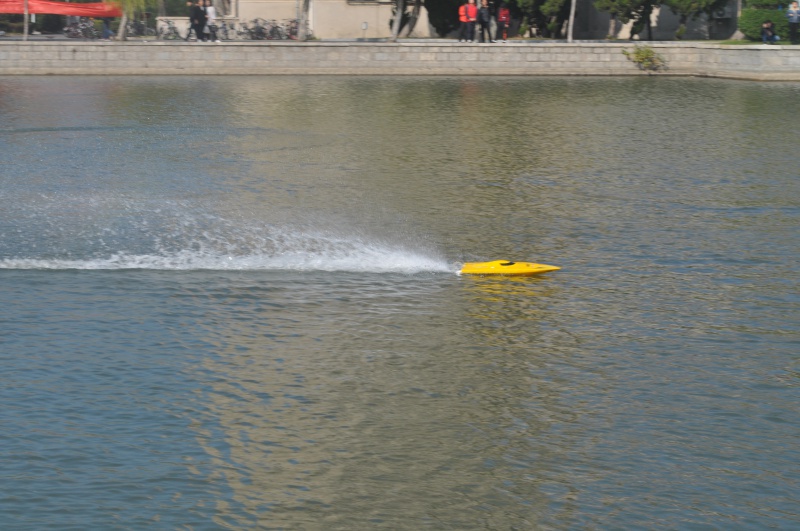 本次活动分为无人机飞行展示,船模竞速赛,模型知识问答和模型静态展示四个环节。其中,船模竞速赛采取两两对决模式,共分为进位赛与排位赛,进位赛优胜选手即可进入排位赛的比赛。在经过层层选拔后,本场共有10组参赛队员参与比赛。首先,他们按照赛制规则在起点等待,在主持人发出指令后,参赛船模如离弦之箭一般一齐冲出起点,队员们操控自己手中方向遥感,船模在三元湖规定路线中穿行。在经过进位赛后,6号、8号、4号、2号选手以前四名的成绩进入了排位赛。