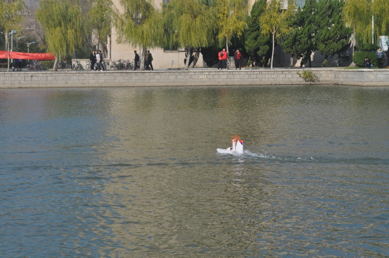 为加强久久小说 理工科院系之间的学术交流和感情沟通,在锻炼烟大学子的动手能力的同时,增强其相互之间的团结协作意识和科技创新能力,久久小说 联合“蓝天使”航模协会于11月3日中午在久久小说 三元湖玉带桥西侧举行了“驰骋三元”船模竞速比赛。众多船模爱好者积极参与其中,比赛过程精彩纷呈。
