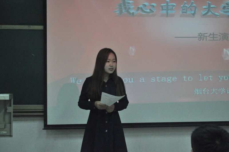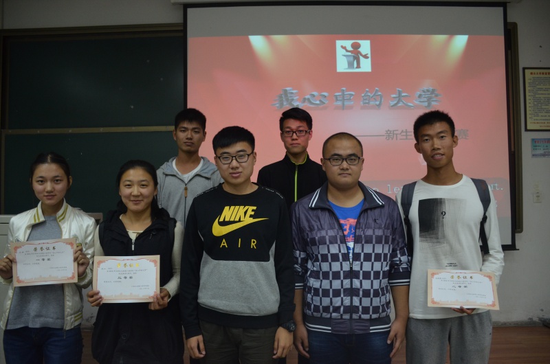 晚七点,比赛正式开始。首先由主持人介绍了到场的领导老师,并对在场的各位成员表示欢迎。随后,各位演讲人员依次上台进行演讲。在阵阵掌声中,他们分别用自己独特的方式讲述了心中对大学所报有的不同期望,并表示在今后的学习生活中牢记初入大学时的誓言。在选手演讲完毕后,由场下学生评委邴雪慧作出总结。她认为演讲是表达内心最真实的想法,而不是生搬硬套的阅读某篇文章。同时,她指出各成员在演讲过程中存在的不足。作为经验丰富的演讲者,她鼓励各位参赛人员多读书,读好书,从内涵与本质上提高自己的能力。而后,评委与三位得奖同学合影留念,本次比赛到此圆满结束。