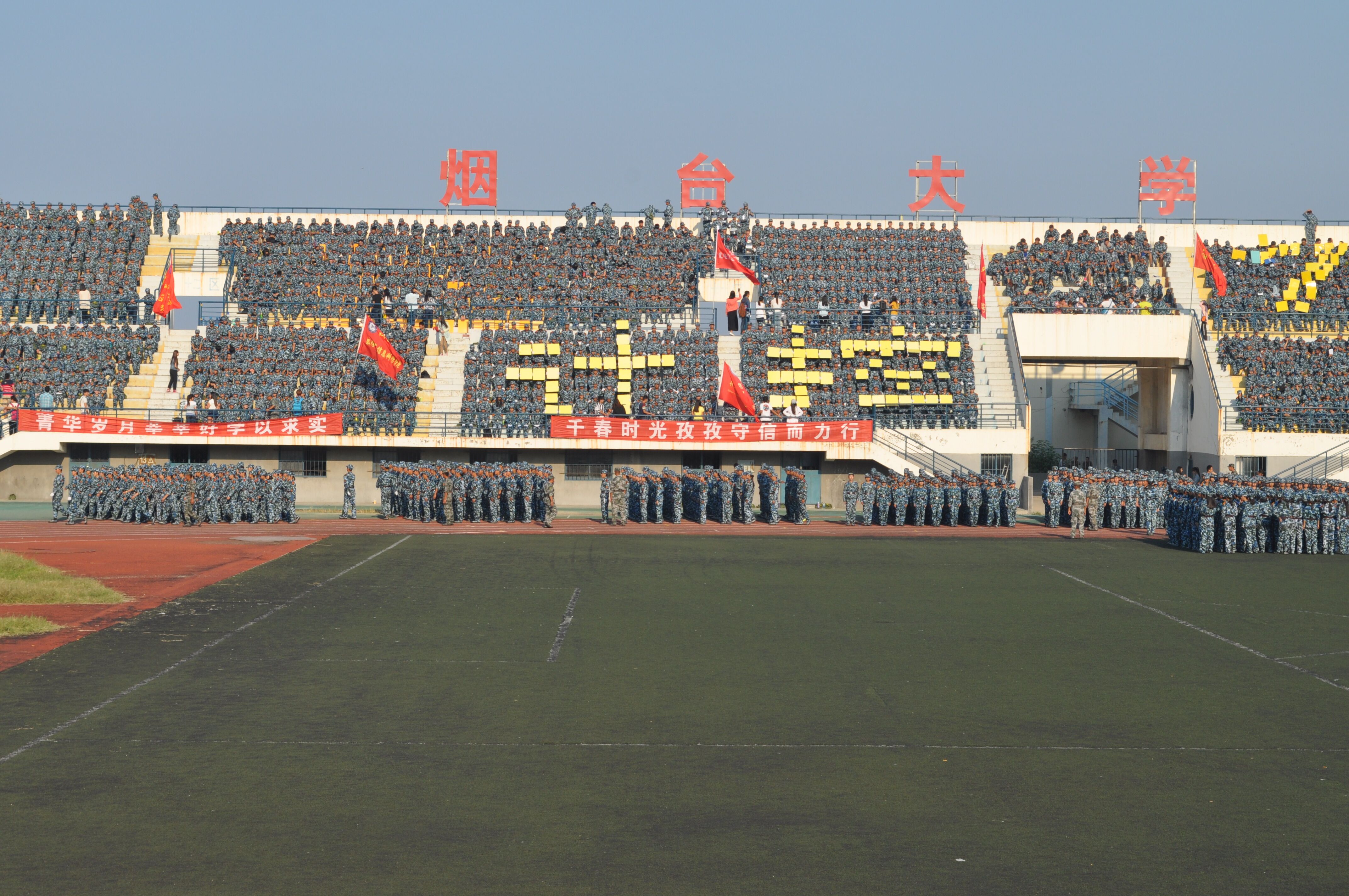 参加方队训练的同学们着装整齐、精神饱满、士气高昂,用他们整齐的列队、飒爽的军姿准备迎接检阅。参加合唱训练的同学们选择了耳熟能详的经典军旅歌曲《当那一天来临》,同学们用嘹亮的歌声唱出了烟大学子的青春风采。此外,合唱队形变化别出心裁,律动的歌曲,变换的造型,拼接成一道道美丽的风景。在歌曲结束后,同学们高喊出“芯系中华,集成天下;计控英才,编译未来”的响亮口号,摆出了“计控”二字。