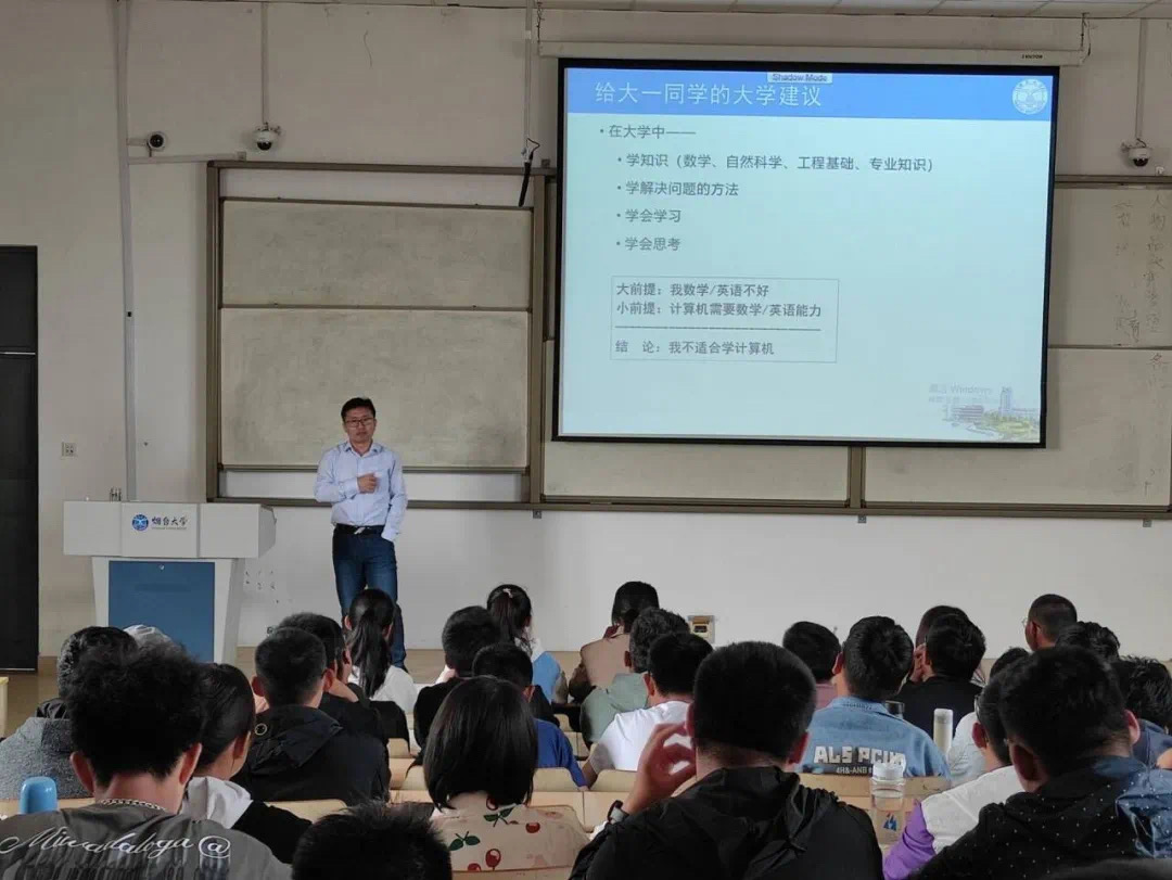 各专业系主任首先向同学们介绍了学院及本专业的创立时间与发展历程,并带领同学们展望了未来几年专业的发展前景,他们鼓励新生学以致用,成为具有创新思维的应用型人才。随后,各位系主任从学科特色、专业定位、培养方案、职业方向等几个方面进行了讲解。软件工程系主任毕远伟老师提醒同学们做好自我管理,自动化系主任刘殿通老师希望同学们找准大学生活的动力和目标,计算机科学与技术系主任贺利坚老师和智能科学与技术系主任徐骞老师告诫同学们不可懈怠,要有一颗积极进取的心,坚持做一个全面发展、高素质的实践性人才。至此,活动圆满结束。