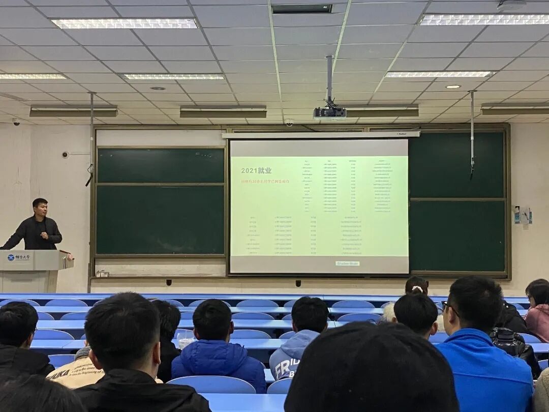 活动伊始,宋健栋借助对去年毕业生就业情况,对今年毕业生的现状进行了说明,并给予毕业生们一些建议,鼓励同学们今年继续努力。他指出,疫情虽然给我们带来了就业压力,但也带来了机遇,比如国家加强对人工智能相关方面的重视,这就需要同学们抓住机遇,将自己四年来的积累,由量变变成质变。紧接着,宋健栋阐述了就业与考研之间的关系,希望每一位同学都能仔细分析毕业后的去向,他鼓励同学们要早行动、多准备,对于就业的大四毕业生,要及早行动,提前做好简历,及时应对面试和招聘,对于想要考研的同学,宋健栋激励同学们奋勇拼搏,在最后的30天里,同学们要调整学习心态,认真地走完全程。最后,同学们纷纷表示,通过本次活动,自己对未来有了更加清晰的规划,一定会提前准备,奋勇拼搏。至此,本次活动圆满结束。