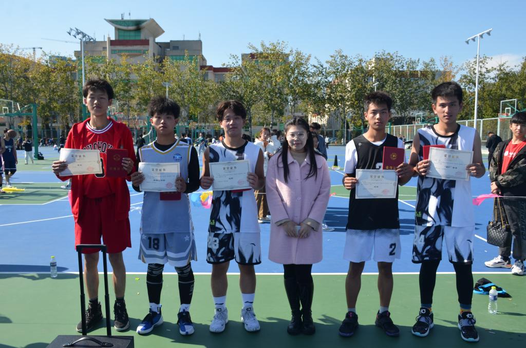 本次比赛为冠军争夺赛,随着裁判的一声哨响,比赛开始。在赛场上,双方选手奋勇拼搏。各班同学更是给了球员们很大的鼓励,他们的欢呼声和呐喊声从未间断。随着时间的推移,比赛进入白热化阶段,现场气氛逐渐热烈。在下半场比赛中,1-1班凭借严密的防守和精准的投篮一直保持领先地位,最终1-1班以90:59的比分摘得桂冠。随后进行颁奖仪式,主持人宣读获奖名单。徐婧怡分别为本场“新生杯”篮球赛的冠军211-1班、亚军218-2班、季军218-1班、精神文明奖213-1班、MVP奖刘昌睿进行颁奖并合影留念。最后,徐婧怡对本届“新生杯”篮球赛总结发言。她指出每一场篮球赛的背后凝聚的是队员们的奋力拼搏和各队友之间的协调配合,是一个班级凝聚力的体现,希望各班借助本次篮球赛增进对彼此的了解,更快地适应大学生活。至此,本次活动圆满结束。