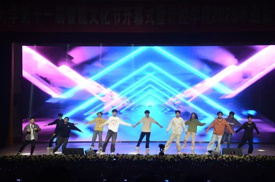 暖场舞《活力绽放》精彩登场,舞者们踏着动感节拍,以舒展的肢体、饱满的热情点燃全场。每一个动作都迸发着力量与朝气,既呼应了智能时代的蓬勃气象,也生动诠释了烟大学子“敢闯敢试”的精神风貌。
